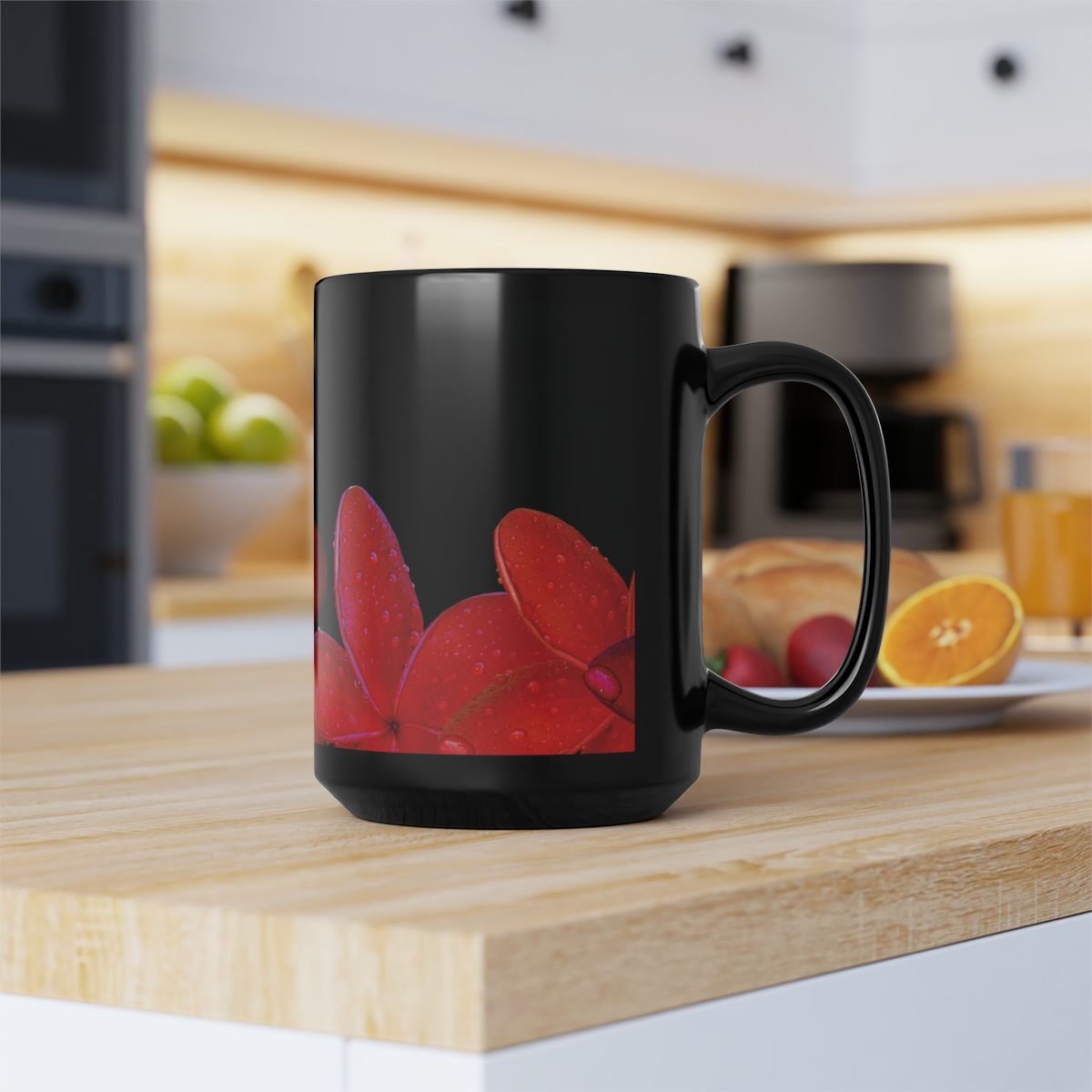 These black mugs come in one size – 15oz (0.44l) – plenty for morning caffeine boosts and hot cups of tea on a rainy day. They’re easy to grip and feel sturdy thanks to the C-shaped handle.