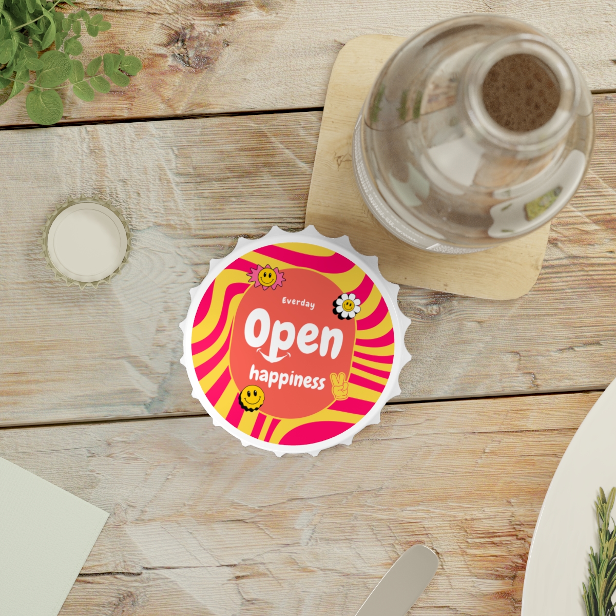 Bottle openers are designed to make our lives easier, and that’s just what this custom opener does – but with more style. Equipped with a handy magnetic back, a unique bottle cap shape, and two different mechanisms for opening bottles, this has it all.