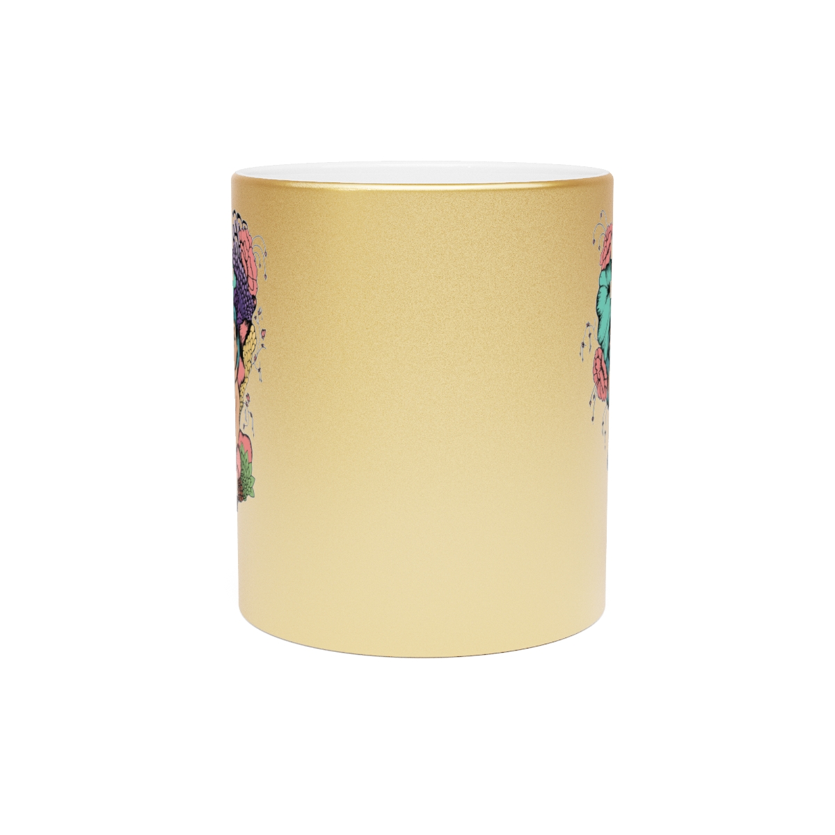 Personalized metallic coffee mugs are the perfect way to begin or end your day. These 11oz mugs are made with ceramic material that can be coated with either a Gold or a Silver coating for extra flashy looks. Add your own designs on either one or both sides and bring your favorite mug to life. NOTE: Black designs will print the best due to the nature of the coating. White will be completely transparent.
